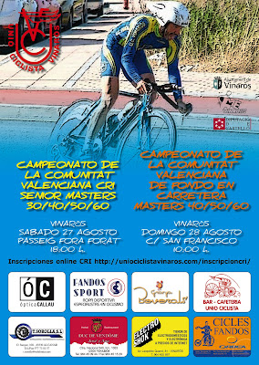 El proximo 27 de agosto celebraremos en Vinaros el Campeonato Autonomico Contrareloj Senior, Master 30,40,50,60. Aqui os dejo el enlace donde podeis hacer las inscripciones: